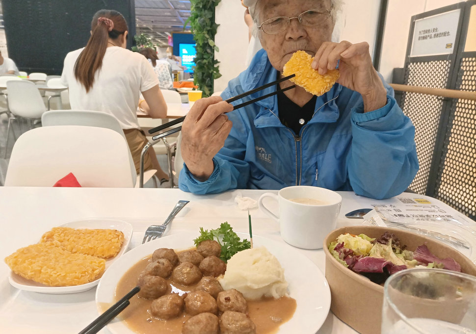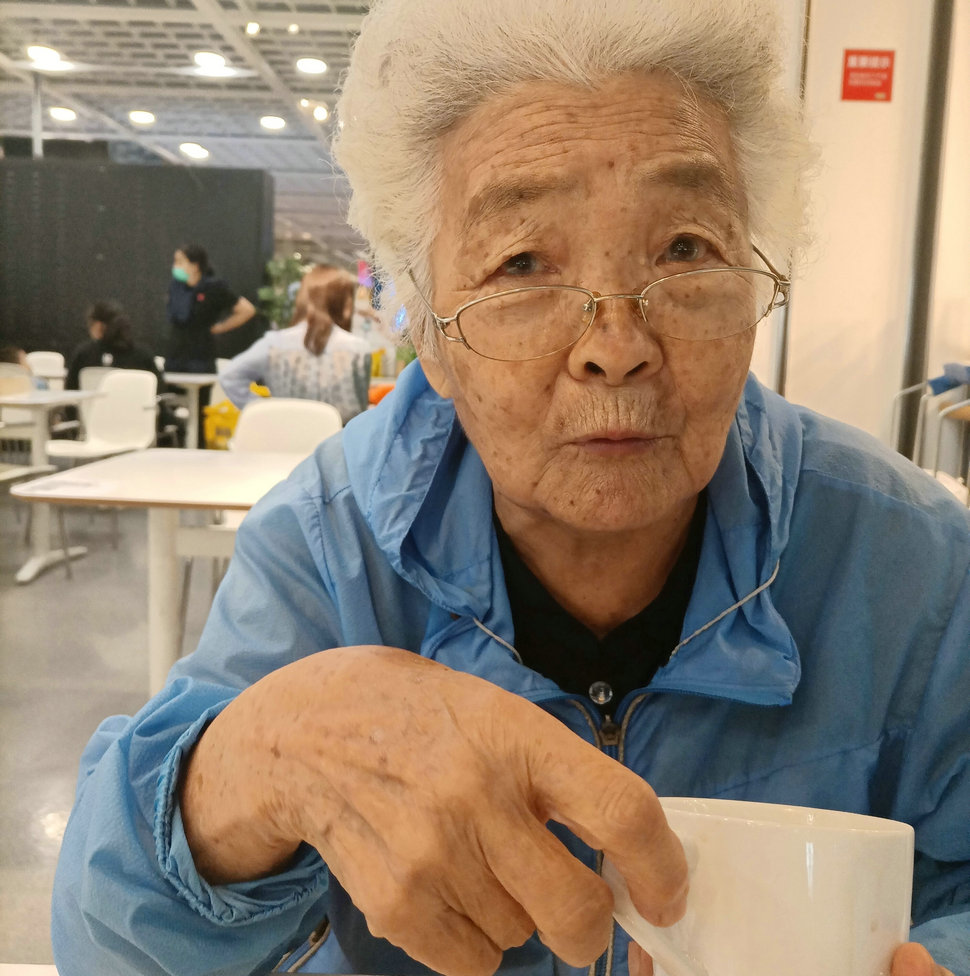 2021年7月7日自驾归来,就餐。老娘头上戴了一顶20多年前发的帽子,上写着“健步走向21世纪 1999”字样,说了几次,坚决留着,说还挺新的